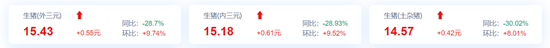 据中国养猪网猪价系统监测,今日全国生猪(外三元)均价报15.43元/公斤,较昨日上涨0.55元/公斤,环比上涨9.74%;全国生猪(内三元)均价报15.18元/公斤,较昨日上涨0.61元/公斤,环比上涨9.52%;全国生猪(土杂猪)均价报14.57元/公斤,较昨日上涨0.42元/公斤,环比上涨8.01%。