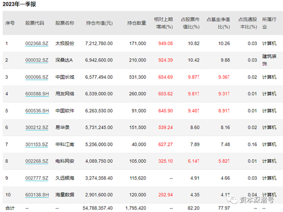 而2022年4季度,该基金的重仓股大幅更迭,由三季报的房地产为主,大幅切换至计算机股票。