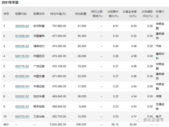 比如,2021年12月31日,周思越开始担任东方区域发展的基金经理。当年4季报显示,该基金重仓股全数“换血”(被替换)。