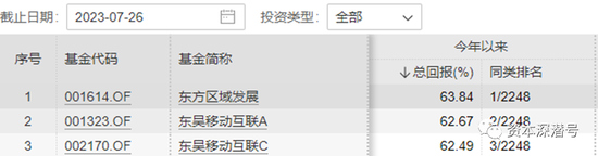 7月26日,东方区域发展年初以来总回报超过63.84%,超过了东吴移动互联,成为了年内回报率排名第一的公募基金。