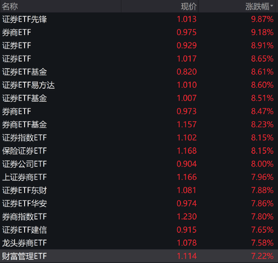 从今日股票ETF二级市场表现来看,“牛市旗手”券商行业主题ETF涨幅霸屏。