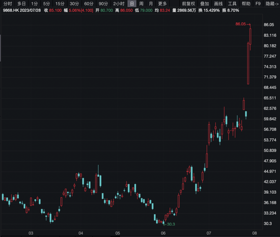 造车新势力之一小鹏汽车(港股)今早开盘暴涨。截至收盘,7月28日,小鹏汽车-W上涨5.06%。消息面上,7月26日深夜“车圈”释放出重磅消息——大众汽车与小鹏汽车签署长期合作技术框架协议,合作初期将共同开发两款针对中国市场中型车市场的大众品牌电动车型,并将于2026年推出。