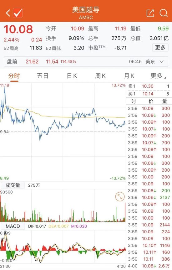 股市亦闻风而动。A股市场,超导概念股午后集体大涨;美股市场,美国超导(AMSC)盘前延续涨势,一度涨超100%。