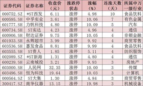 表:连续上涨3日且今日收盘涨停个股情况