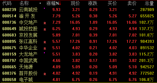 地产板块今日再度走强,截至收盘,云南城投涨停,渝开发、中交地产涨逾7%,城投控股、京投发展涨约6%,张江高科涨超5%。