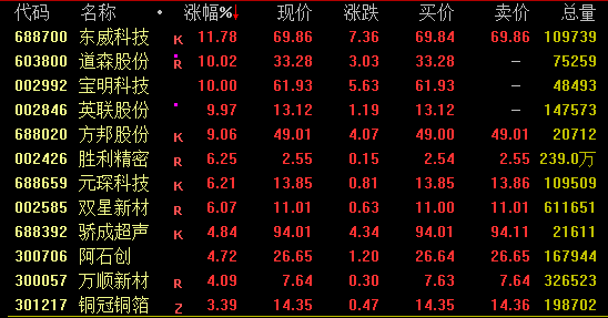 复合铜箔概念走势活跃,截至收盘,东威科技涨近12%,道森股份、宝明科技、英联股份等涨停,方邦股份涨超9%。