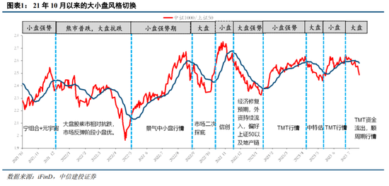 七月以来市场向大盘风格切换,一方面由于TMT短期超涨后产业层面缺少进一步催化,另一方面由于顺周期此前表现持续低迷,重磅政策落地带动预期边际改善。复盘历史上大小盘切换的案例,我们发现后续向小盘切换的关键因素是大盘短期超涨后政策/经济不再超预期,叠加小盘短期超跌后重磅产业/政策催化,后续关注(1)超预期的宏观政策和经济修复信号催化下大盘风格的延续和(2)重磅产业催化下市场向小盘风格的切换。