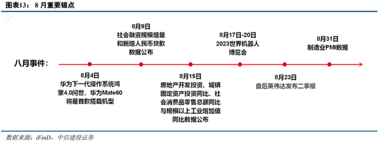 八月中旬后,当前大盘股的优势风格或迎来一些变化。本轮大盘股优势从七月初延续至今,目前部分投资者对于后续进一步放开一线地产限购首付等有所期待,若后续政策刺激力度或经济数据持续超预期,大盘的强势风格仍将有力延续。同时,八月中下旬成长方向的催化也将逐步增多,包括华为鸿蒙4.0发布(8月4日)、深圳国际人工智能展(8月17日-19日)、英伟达二季报(8月23日)等,届时资金也将重新考察大小盘的相对优势,并成为下一阶段风格的抉择时点。