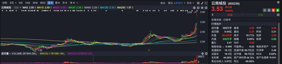 另一家公司是云南城投,几个月前也是下跌非常离谱,最低跌到1.52元。而今天,云南城投涨停之后,股价涨到了3.53元。