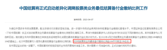 资料显示,这是中国结算第三次“降准”。第一次是2019年12月20日,股票类业务最低结算备付金收取比例由20%降至18%;第二次是2022年4月,股票类业务最低结算备付金缴纳比例自18%调降至16%。