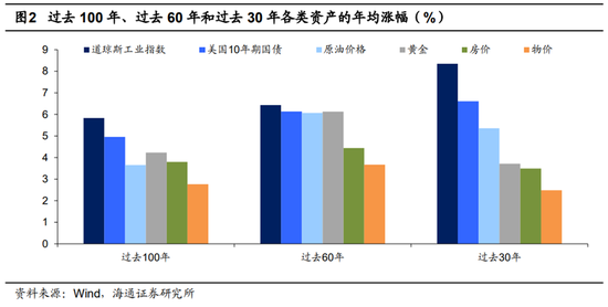 海通曾经进行过测算,在1918年用1万美元购买不同的资产,到2018年1万美元在股市中将变成288万美元,而如果投资债券,1万美元也会变成126万美元。相比之下,大宗商品投资要略微逊色,投资原油和黄金仅能获得36万美元和63万美元,而如果将资金投资于房地产,目前的房子价值也就值41万美元。