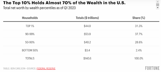 受疫情和地缘冲突影响,这两年全球经济下行,逆全球化加剧、失业率飙升、社会投融资活力下降、资产负债表受到冲击,然而根据美联储最新数据,美国最富有1%的人净资产占社会总量的31.3%,而底层90%的人财富份额的总和也只有31%,这两个数字在1989年还分别只是23%和40%。根据World Inequality Database,我国前10%控制财富份额也从1995年的40%提升到2021年的68%。