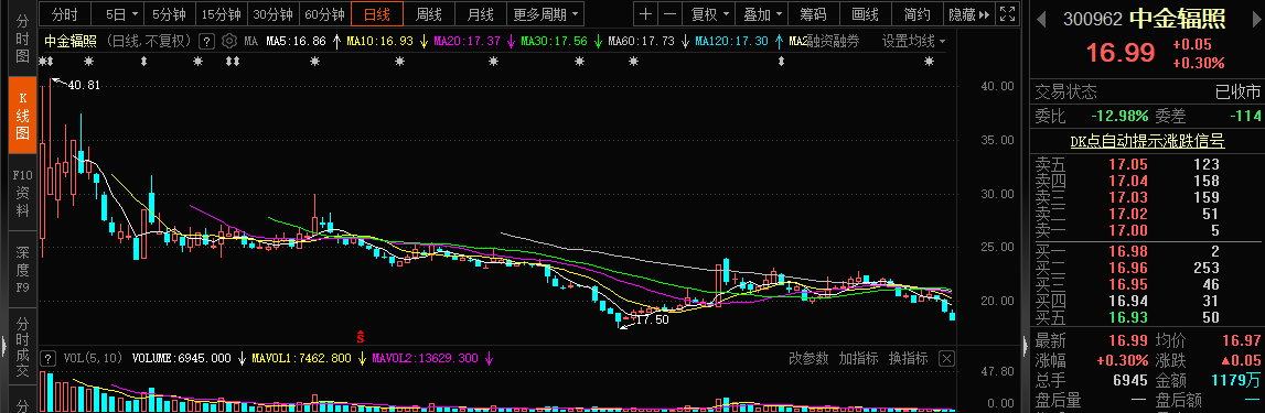 中金辐照上市首日最高大涨10.76倍,当日最高价触及40元,该股上市前几个交易日,依然引发资金激烈博弈,该股次日股价最高触及40.81元。截至目前,中金辐照收盘价为16.99元,相较于首日上市最高价股价跌幅达到57%。