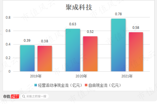 但问题是,2019年-2021年,聚成科技依靠经营活动拢共才带来1.8亿的现金净流入,扣除资本支出后,剩下不到1.5亿——远远抵不上2.3亿分红。