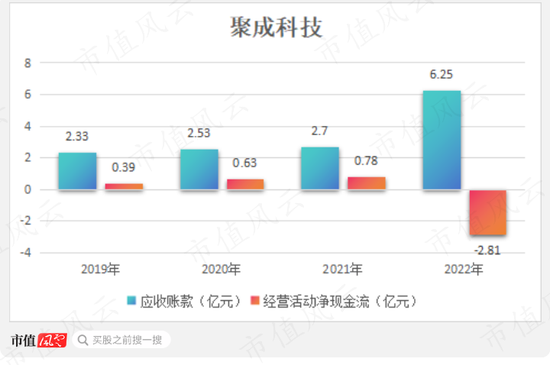 但这2.32亿利润也没能顺利变现,反倒是应收账款激增,经营活动净流出2.81亿。