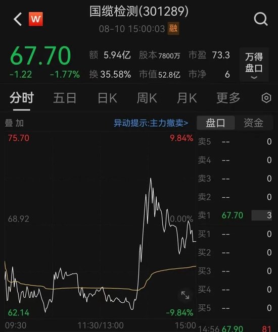 板块中,国缆检测一度跌超9%,午后急速拉升,涨幅一度达到5%,但此后又震荡下跌,收盘下跌1.77%,区间振幅达到14%。