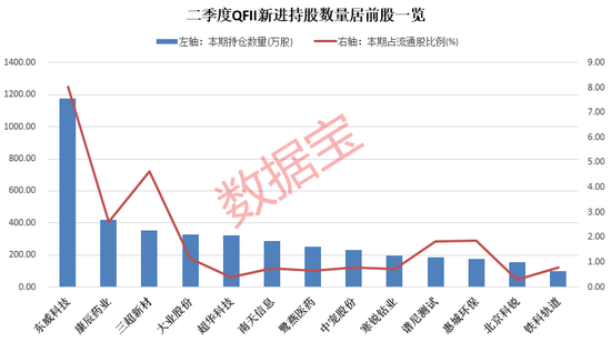QFII新进持股数量居前的还有康辰药业、三超新材、大业股份、超华科技(维权)、南天信息等。