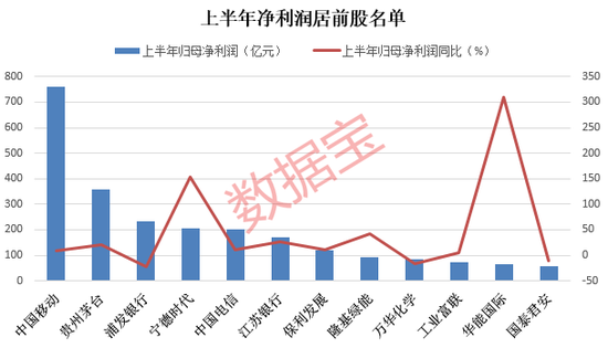 截至目前,A股中有近400股已经发布了半年报,7股上半年归母净利润额超百亿元,中国移动上半年净利润额暂居首位,超过第二名贵州茅台的401.93亿元。