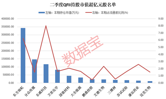从二季度期末持股市值看,QFII期末持股市值在1亿元以上的有12股,东方雨虹、分众传媒、东威科技的QFII持股市值居前,均超10亿元。