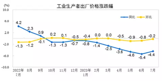 正好8月9日刚公布了7月的PPI数据。7月PPI环比下降0.2%,降幅比上月收窄0.6个百分点;同比下降4.4%,降幅比上月收窄1.0个百分点。从下面的趋势图看的比较明显,目前 PPI 处于筑底阶段,上行拐点将至。