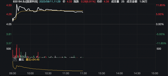 行情数据显示,科净源上午盘中涨幅一度达122.2%。