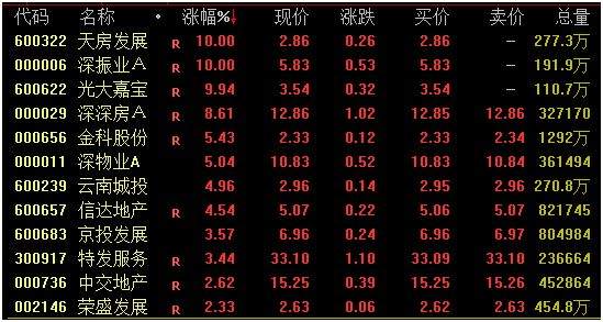 地产板块盘中震荡走高,截至收盘,天房发展、深振业A、光大嘉宝等涨停,深深房A涨近9%,金科股份、深物业A涨超5%。