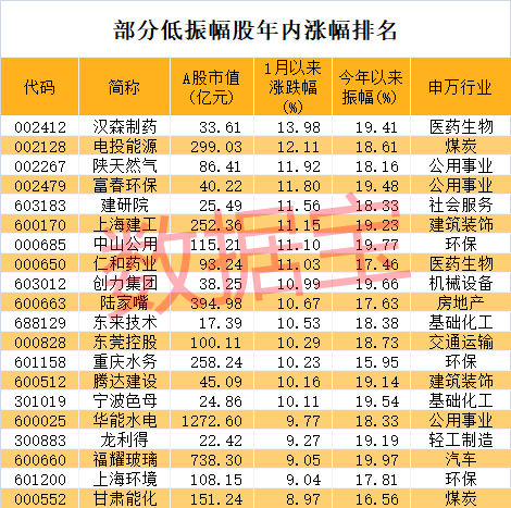 从二级市场表现来看,上述低振幅且跑赢大盘指数的股票中,15股今年以来涨幅超10%。汉森制药年内累计涨幅近14%,排在第一位,公司主要产品四磨汤口服液为国家医保目录乙类产品,是公司独家生产品种;今年第一季度公司实现净利润0.55亿元,同比增长6.26%。涨幅靠前的还有电投能源、陕天然气、富春环保、建研院、上海建工等。