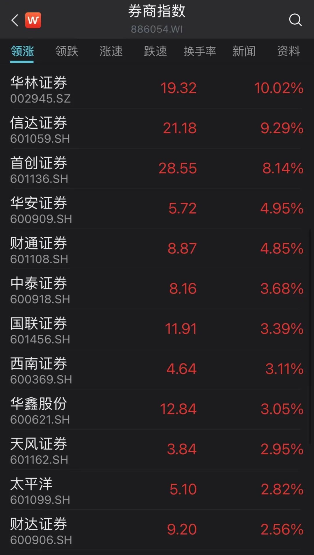 今天上午,券商板块持续拉升,华林证券、信达证券等个股涨幅居前。