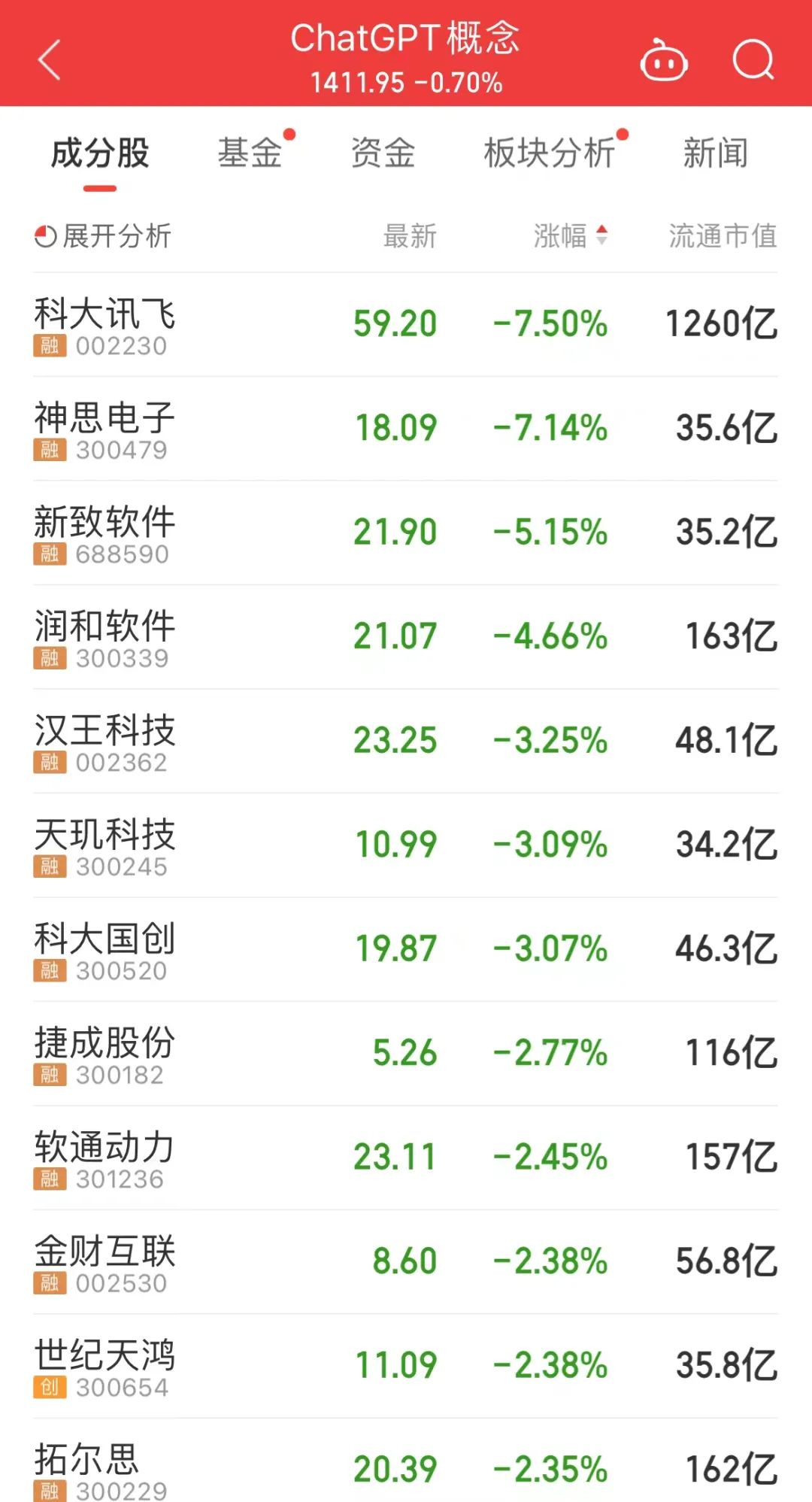 受科大讯飞影响,ChatGPT概念上午调整。