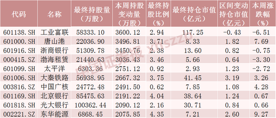 本周北向资金对1349只股票的持股数增加,对其中37只股票的持股增加数超过1000万股,持股增加数最多的工业富联增加了3600.12万股,对唐山港、浙商银行持股分别增加3496.81万股、3450.76万股。