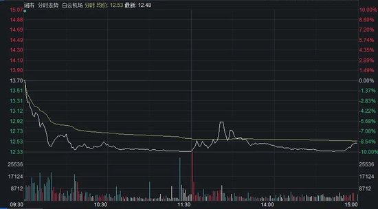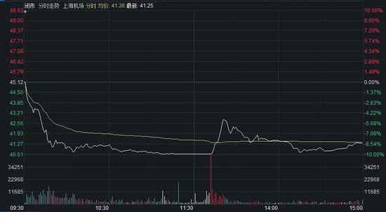 两家上市公司在辟谣后,股价一度上扬,不过很快又重新下跌。截至收盘,白云机场下跌8.91%,上海机场下跌8.58%。