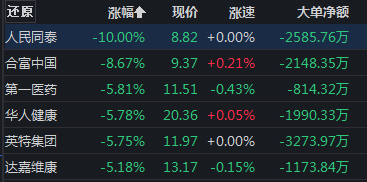 此外,医药商业板块跌幅居前,人民同泰跌停。