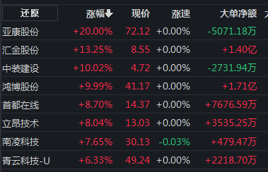 算力板块领涨,亚康股份20cm涨停,鸿博股份涨停。