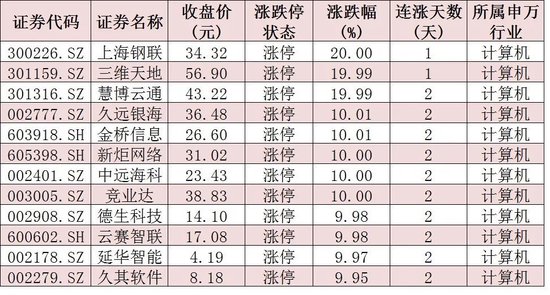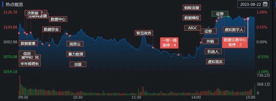 具体来看,今日,数据要素板块领涨,板块内个股掀起涨停潮,其中,零点有数、上海钢联等5只个股涨停;国资云全天强势,易华录涨超10%,人民网等4只个股涨停;算力租赁延续涨势,鸿博股份等3只个股涨停;机器视觉板块午后拉升,慧博云通、久远银海等3只个股涨停;在线教育、数据中心、智能交通、元宇宙、区块链等板块表现活跃。美容护理板块领跌,医药商业、环保、ST板块、共享单车、燃气等板块跌幅居前。