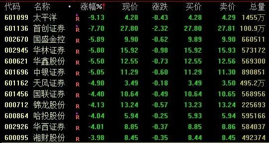 券商板块今日大幅跳水,本轮行情“领头羊”太平洋大跌逾9%,盘中一度触及跌停;昨日刚创出新高的首创证券跌近8%,国盛金控(维权)、华林证券、华鑫股份、中银证券等跌超5%。