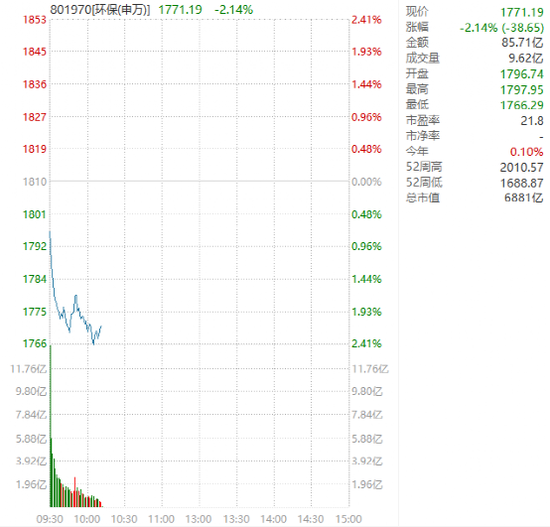 近期环保领域事件频出,多只个股迎来一波行情。但在今日上午,环保概念股集体走低,在申万一级中跌幅居前,总市值跌至约6880亿元。