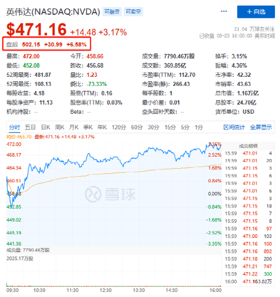 财报公布后,英伟达盘后股价大涨,突破500美元创历史新高。
