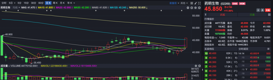 其次,港股市场大涨,与A股形成联动效应。今日,恒生指数盘中大涨超过2%,恒生科技指数涨幅一度超过4%。同时,港股医药股大涨,比如药明生物、康希诺生物、药明康德(维权)港股等,都大幅上涨。这对处于“水深火热”中的A股医药股起到不小的支撑作用。