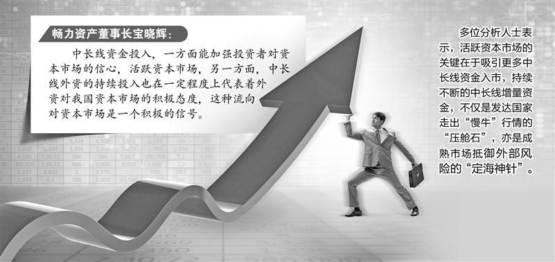 畅力资产董事长宝晓辉认为,中长线资金投入,一方面能加强投资者对资本市场的信心,活跃资本市场,另一方面,中长线外资的持续投入也在一定程度上代表着外资对我国资本市场的积极态度,这种流向对资本市场是一个积极的信号。