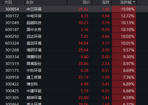 日本核污染水排海一事的影响也在A股市场发酵,环保板块上午纷纷大幅上涨,截至午间收盘,中兰环保“20CM”涨停,超越科技、中电环保等多股涨幅超过10%。