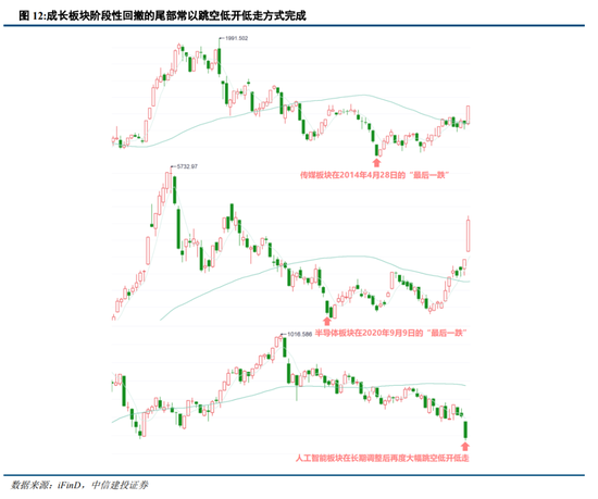 此外,成长板块作为市场风险偏好的风向标,对市场情绪底的判别也具有重要意义。具体而言,历史上多次市场的情绪底都伴随着成长板块在长期调整后的再度大幅跳空低开低走,而在成长板块的“最后一跌”后,市场做空动能释放完全,情绪有望逐步修复。本周五TMT在没有实质性利空的情况下大幅跳空低开低走,再创本轮调整以来新低,这意味着市场情绪已经到达冰点。