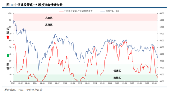 本周市场的一大特征是上次在并无实质性利空的情况下出现底部大跌,我们认为下跌主要源于市场恐慌抛售下的负向反馈:一方面部分止损盘平仓导致股价下跌,一方面股价的下跌又加剧了市场的恐慌情绪和止损平仓,而利好提振下市场日内的情绪反转又往往伴随着资金的逢高出货,导致市场整体抛压较重,热点板块行情持续性也较差。虽然近两周市场持续回调,但我们跟踪市场的一些指标已显示出市场见底的信号。例如,我们构建并持续跟踪的投资者情绪指数近日已经跌破10并进一步下行,目前已进入恐慌区,情绪的极端低位距离不远。预计近期市场就将形成新的“恐慌底”,之后市场有望迎来反转。