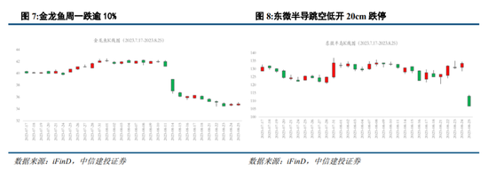 ●政策底明朗,经济接近底部。首先,本周政策持续发力,缓解之前市场政策低预期的担忧。央行调降一年期LPR;地产方面三部门发布通知具体落实“认房不用认贷”政策措施;证监会同机构投资者座谈会,财政部公告印花税减半征收,为市场释放积极信号。其次,当前临近中报尾声期,暴雷影响即将结束。最后,8月除地产继续下行之外,经济有企稳迹象,商品价格反弹。海外市场方面,鲍威尔在美联储年发言点评,强调货币政策前景取决于后续数据的表现,但也提及增长超预期或者就业市场不继续放缓。A股市场方面,本周下跌体现市场恐慌抛售的负向反馈,“固收+”破净比例已达相对高位,说明当前市场情绪已经位于低谷。