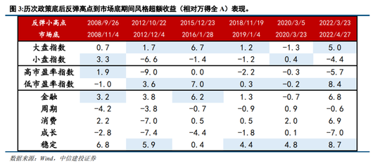 市场情绪延续低迷,短期短久期资产继续占优。短期影响市场表现的核心因素在于投资者信心不足及情绪低迷。目前即便几大信号出现了一定边际的好转,如汇率表现出现企稳态势、认房不认贷等稳增长政策进一步落地、基本面即将迎来旺季边际改善(近期南华工业品价格上行、出口集装箱运价指数也已经小幅回暖),但明显反馈不足,更多反映了远期忧虑短期化及恐慌情绪的宣泄。在投资者信心尚未企稳背景下,短久期资产仍将占优。回顾08年以来历次政策底后市场反弹高点到市场底确认期间(情绪杀)的风格表现,大盘、低市盈率、稳定风格具备较为明显的超额收益胜率。一方面市场在此阶段对于中期基本面的可兑现度和可见度存疑,而更看重近期盈利兑现(如分红率、业绩稳定性);另一方面情绪影响下、资金存量博弈下,对于高估值、低赔率资产的容忍度也相应降低。