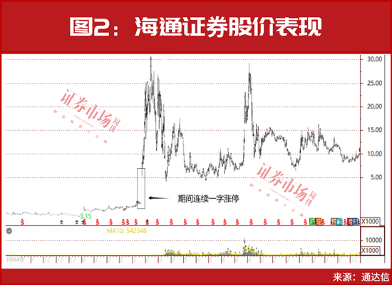 如2005年1月印花税率宣布下调后至2007年10月,券商板块累计上涨近7倍,期间,国金证券、中信证券、哈投股份、海通证券等涨幅均超过10倍,如海通证券,或受印花税下调刺激,股价一度连续收出一字涨停,期间累计最高涨幅达11倍(见图2)。