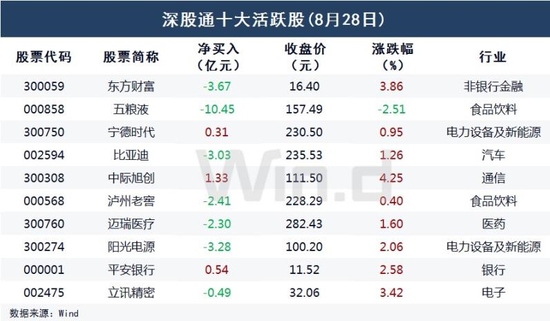 五粮液收盘价创下年内新低,北向资金再度抛售超10亿元,为月内第二次。此外比亚迪、阳光电源、紫金矿业净卖出额均超过3亿元。