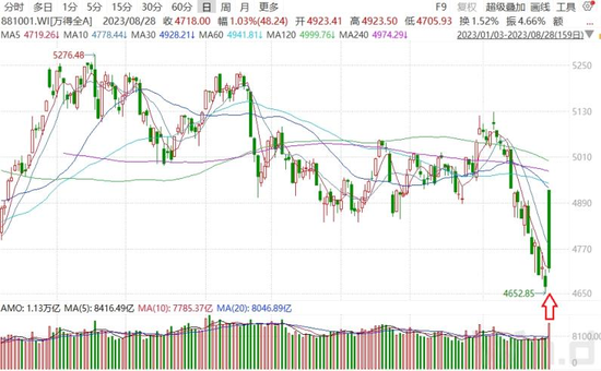 8月28日,A股成交额突破一万亿元,为8月4日以来首次。万得全A成交额为1.13万亿,较前一交易日大幅放量。