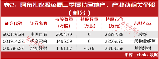 从目前的二季度持仓来看,阿布扎比投资局对不少个股坚守持仓,其中又以地产产业链公司居多,如建材类、物业类公司。