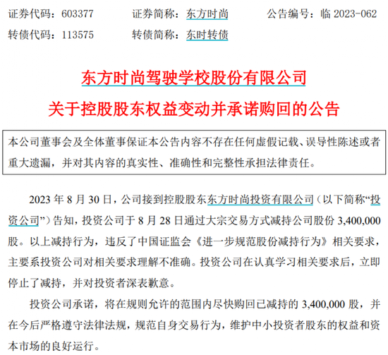道歉同时,投资公司承诺,将在规则允许的范围内尽快购回已减持的340万股股份。