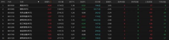 今天是“煤飞色舞钢花溅”的一天,周期股整体活跃拉升。